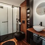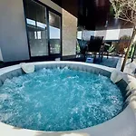 Diese Unterkunft verfügt über ein Badezimmer mit einem Whirlpool, einer getrennten Toilette und einer Dusche. Außerdem gibt es einen Haartrockner und Handtücher.